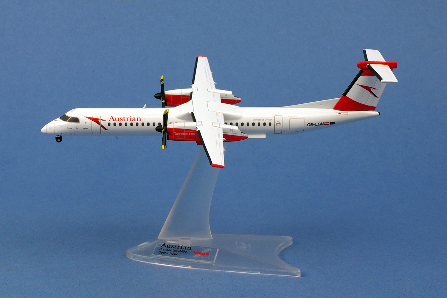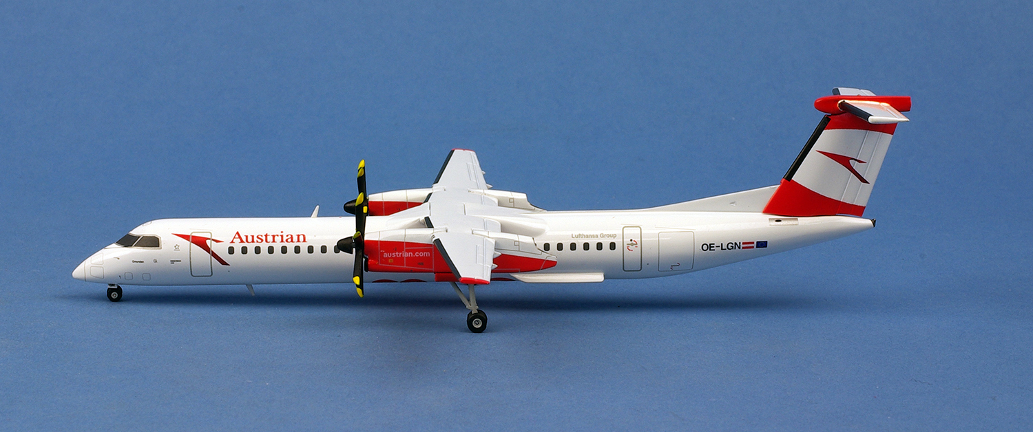 OE-LGN a reçu la livrée légèrement mise à jour d’Austrian Airlines en 2020, y compris le message d’accueil local « Servus » sur le ventre du fuselage, jusqu’à ce qu’il quitte la flotte en août 2021, avec tous les Q400 restants