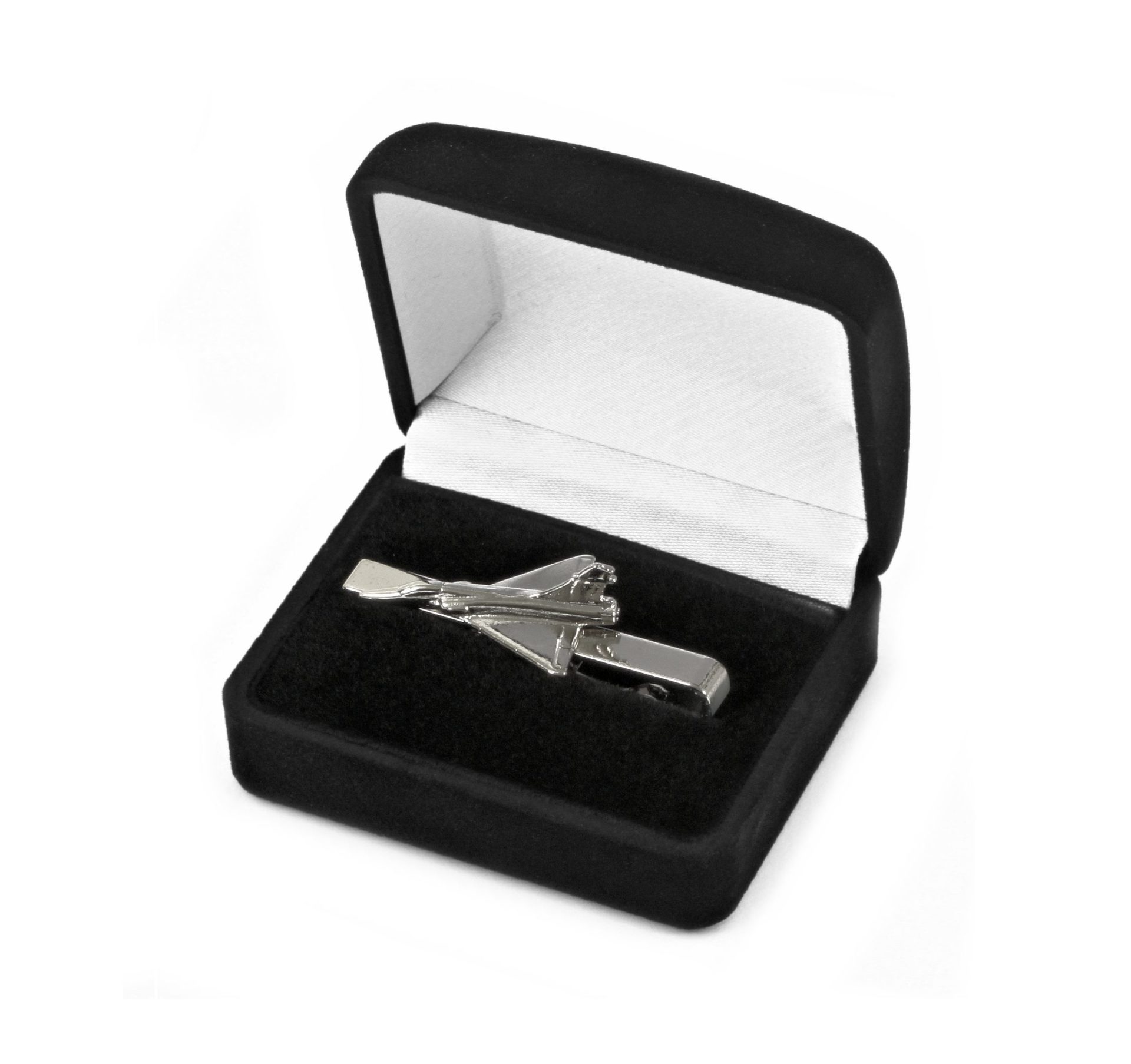 Elégante pince à cravate ‘crocodile’, pour tenir sans détériorer votre cravate. Avec une parfaite miniature aéronautique nickelée, en 3D, environ 3cm, présentation en écrin.